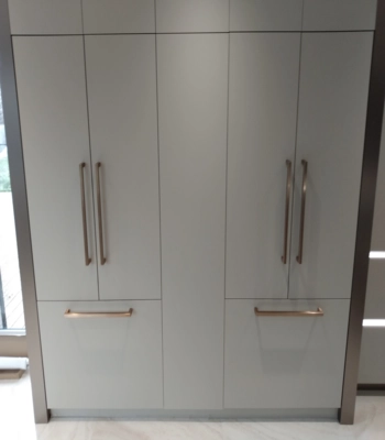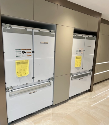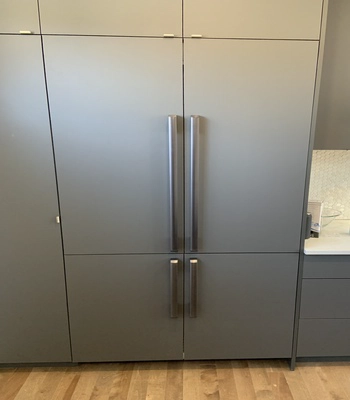 A plumber can prepare the water valves, but most won’t handle full fridge installation. Our team handles everything, from leveling the unit to installing panels, handles, and connecting water lines. So your built-in or custom fridge is installed safely and professionally.